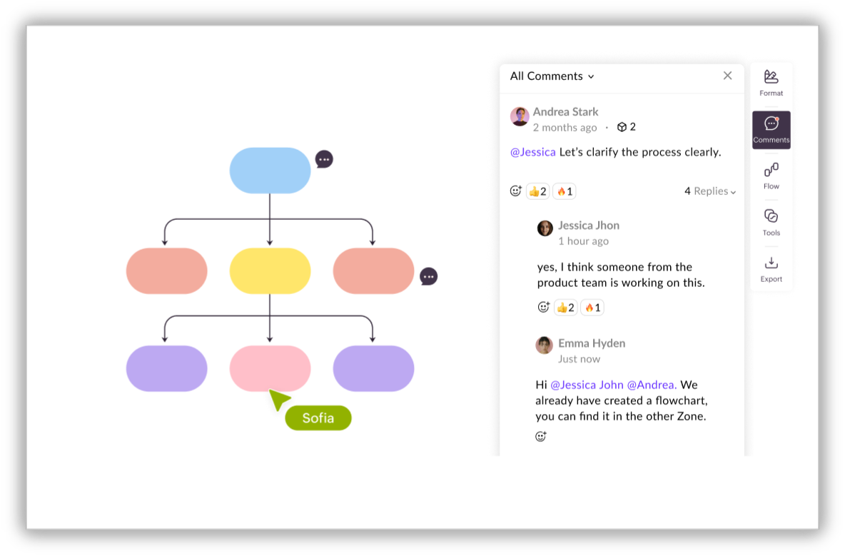 Comments keep conversations attached to the relevant part of the canvas.