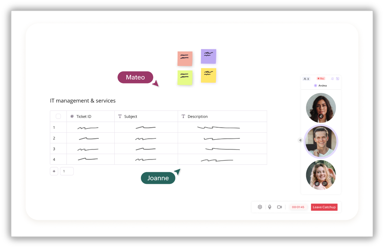 Distributed teams often struggle with clarity. "Who said what? What changed? What’s the latest version?" A shared whiteboard solves this.