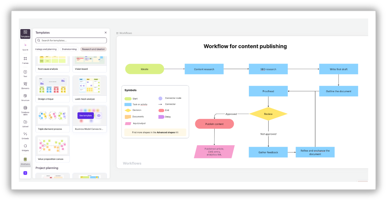 Vani's template library covers the most common team workflows: brainstorming, strategy planning, diagramming, icebreakers, and more. Pick the one that fits your session, or open a blank canvas if you want full creative control. Either way, you're saving the first ten to fifteen minutes that most teams spend just figuring out structure.